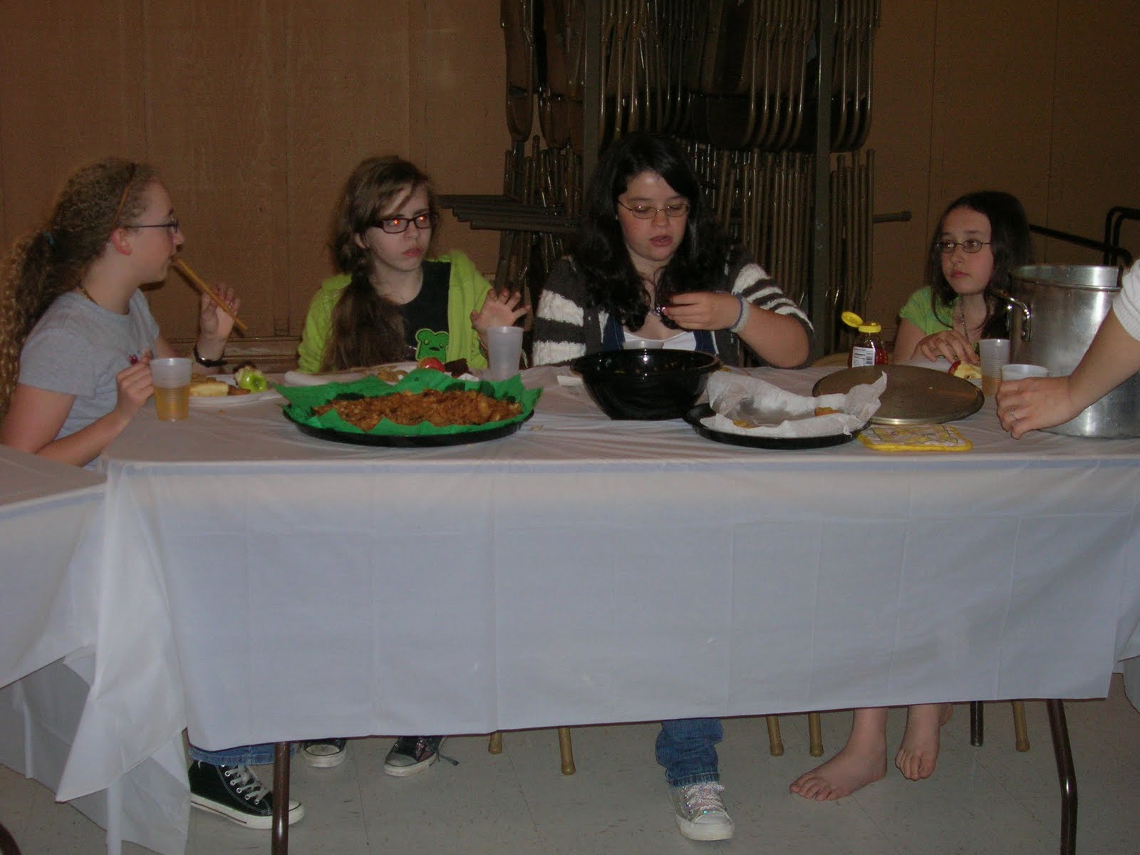 During the feast, the girls danced and a highly dramatic presentation of “Little Red Riding Hood” was given. All the girls agreed that the food was suprisingly good! They also said it was fun to be able to use their fingers to eat with, even though the Fruays was a bit difficult to manage without a spoon. The evening ended with a great Huzzah!